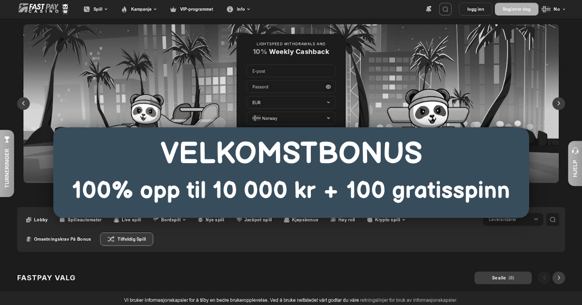 Fastpay Casino skiller seg ut som et moderne nettcasino med et sterkt fokus på effektivitet og spilleropplevelse. Vi tilbyr et omfattende utvalg av over 6000 spill, inkludert spilleautomater, bordspill og live casino-alternativer. Plattformen vår er designet for å være mobilvennlig, slik at du kan spille når som helst, hvor som helst. Vi aksepterer spillere fra Norge og legger vekt på raske transaksjoner, noe som gjør oss til et populært valg blant de som søker casino på nett med rask utbetaling. Vår tilnærming er transparent og spillerfokusert, med vekt på underholdning og ansvarlig spill.